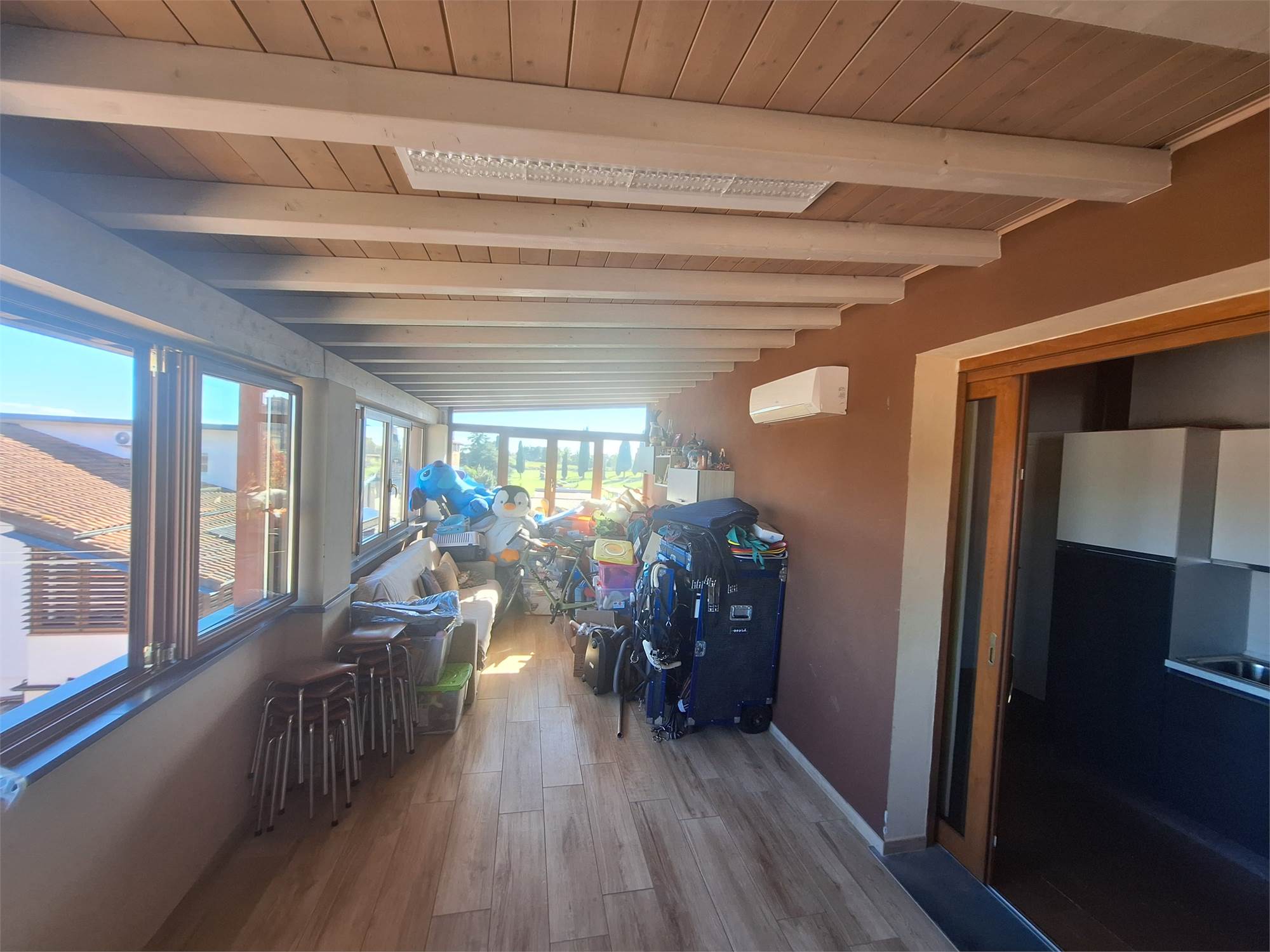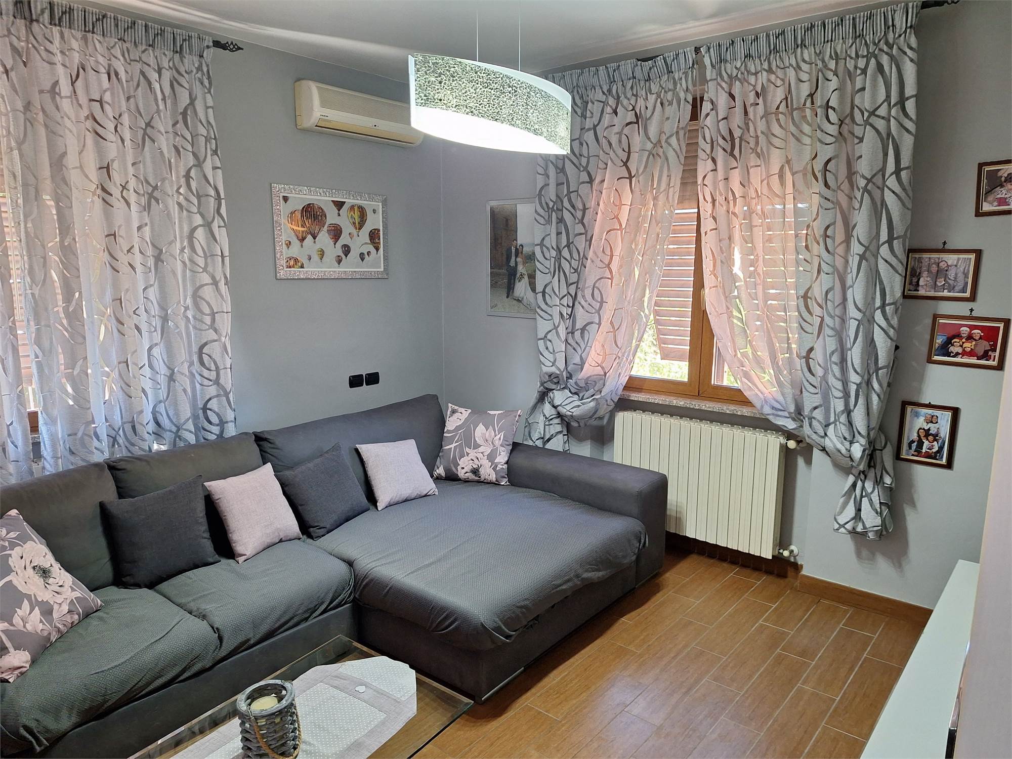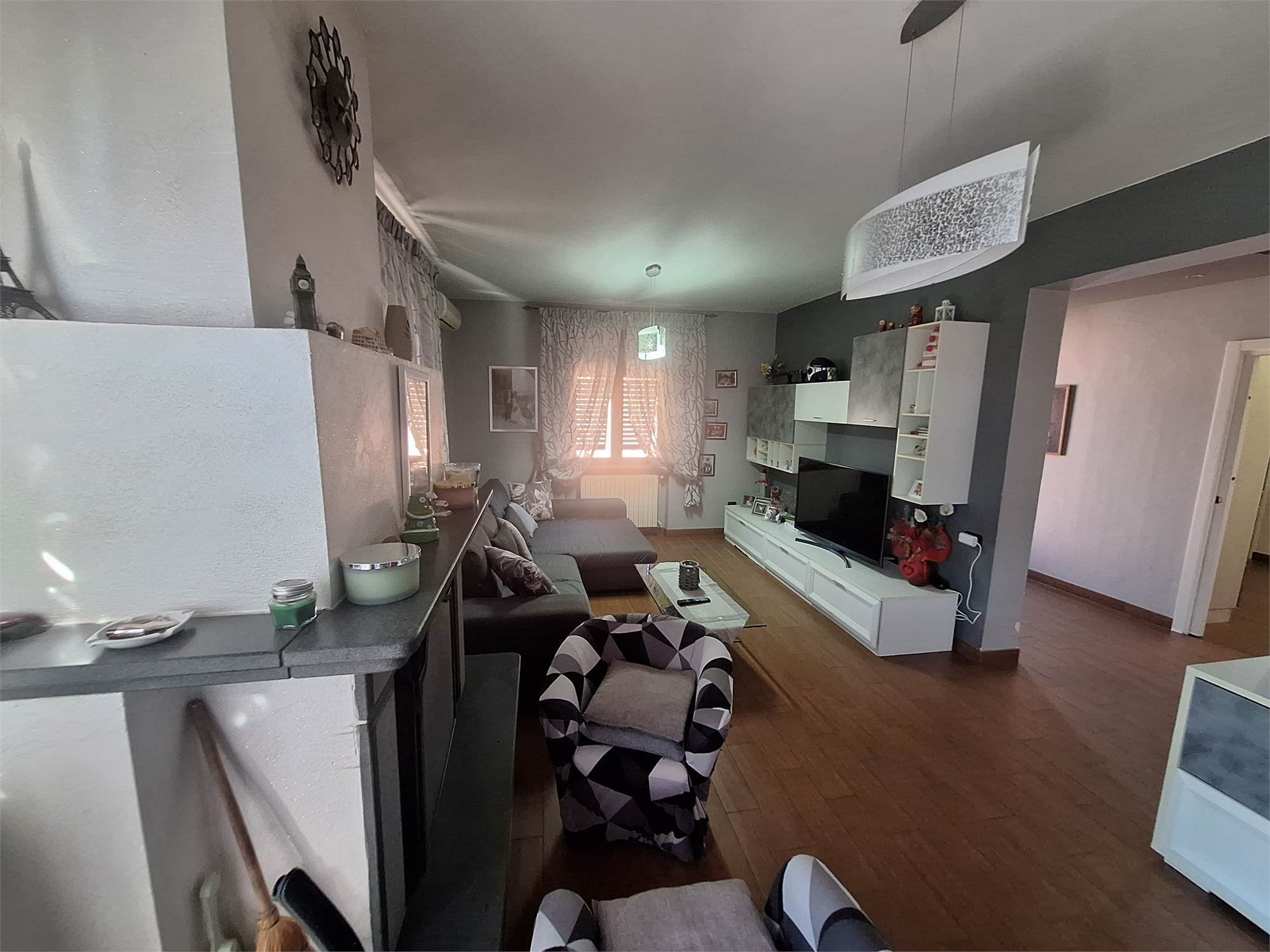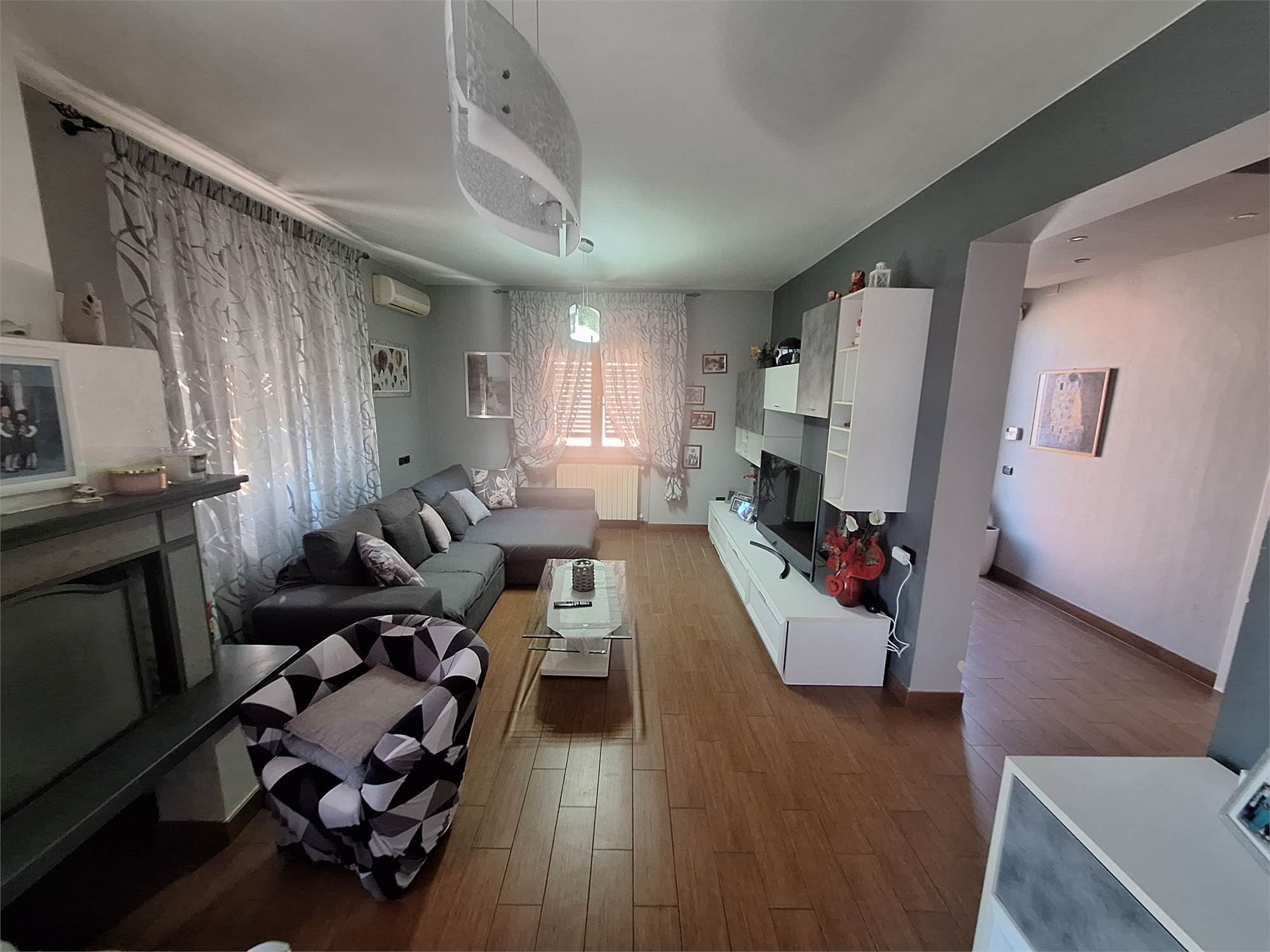EQUIPMENT; porcelain stoneware floors in the living area, parquet floors in the sleeping area, air conditioning in all rooms, large cellar, private balcony, entrance driveway for 2 cars parked in line, electric gate, internal PVC window frames with double glazing and PVC shutters. whirlpool bath, 2 kitchens and 4 bathrooms, as well as 5 bedrooms.