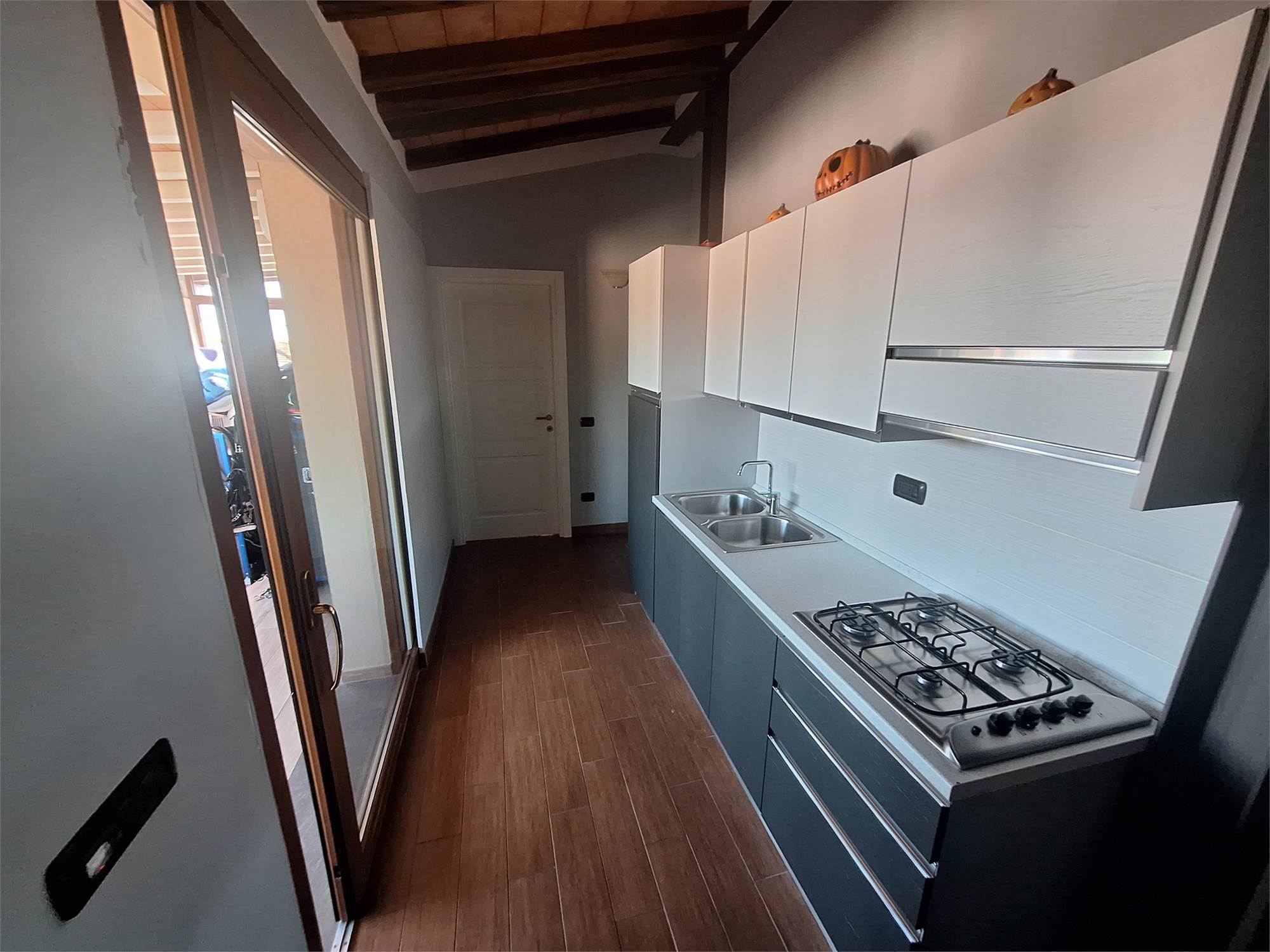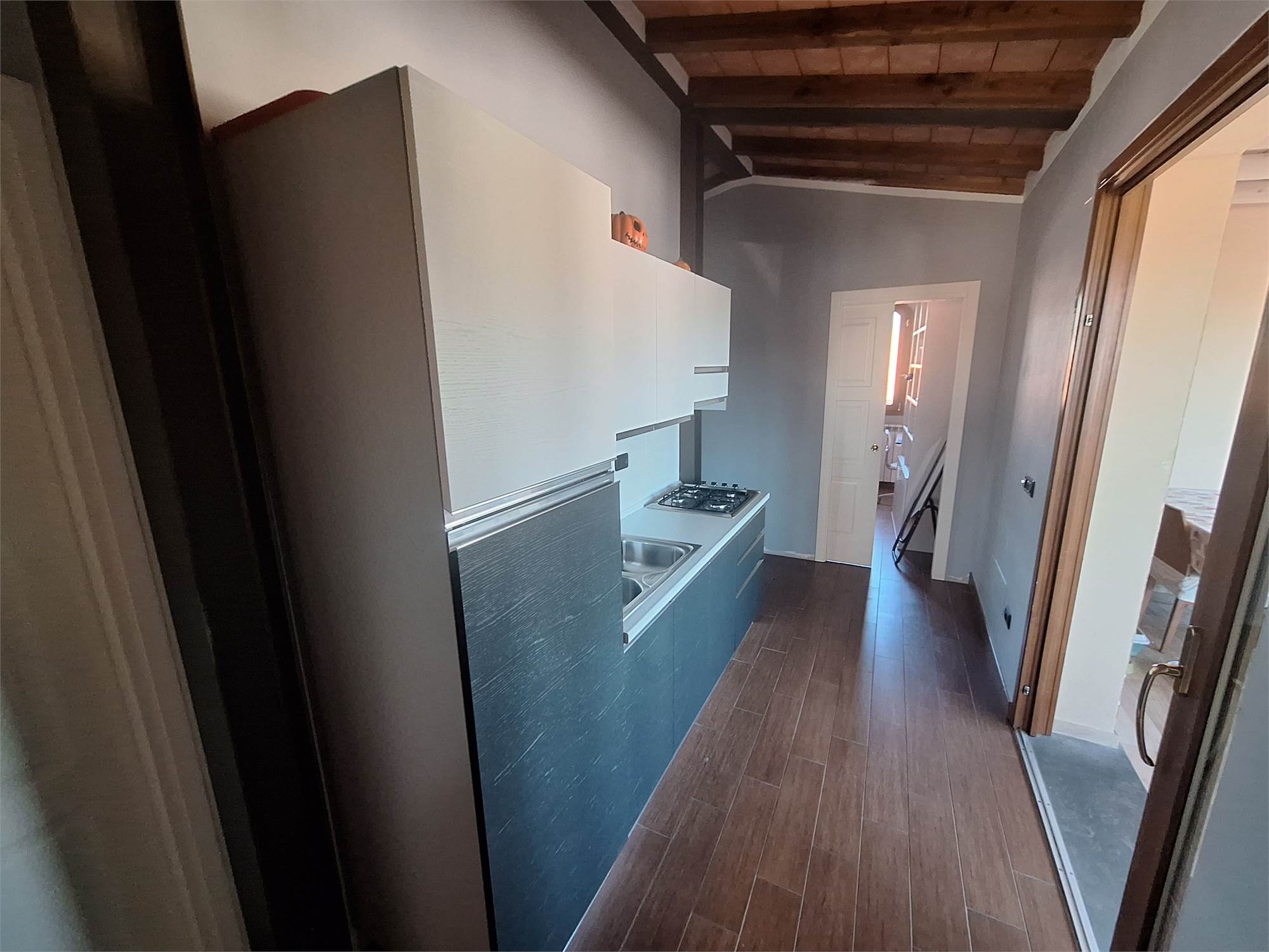CURRENTLY it is arranged on 2 internal levels and is composed as follows; on the first floor entrance, kitchen with utility closet, large living room with fireplace and balcony, 2 double bedrooms and 2 bathrooms with windows.